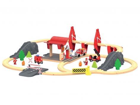 Set chemin de fer pompier, ferme, chantier ou jung...